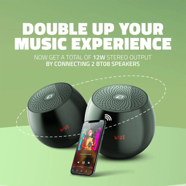BT03 is the perfect compact wireless Bluetooth speaker. Packed with features such as USB inputs, TF card inputs TWS mode and Mic for handsfree calling, it is ideal for every occasion and all your needs. 6 W RMS speaker giving you a dynamic sound effect with crystal clear sound playback. The BT 08 has upto 3-4 Hours of playback time and 2-3 hrs charging time with a rechargeable 800mAh battery for extended usage. It also features an LED Display indicator. Listen to music with volume adjustment, previous/next/pause functions.