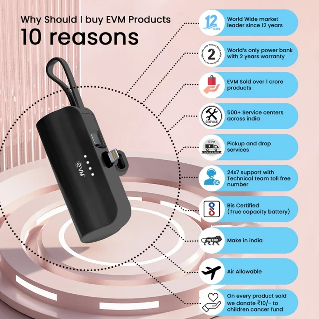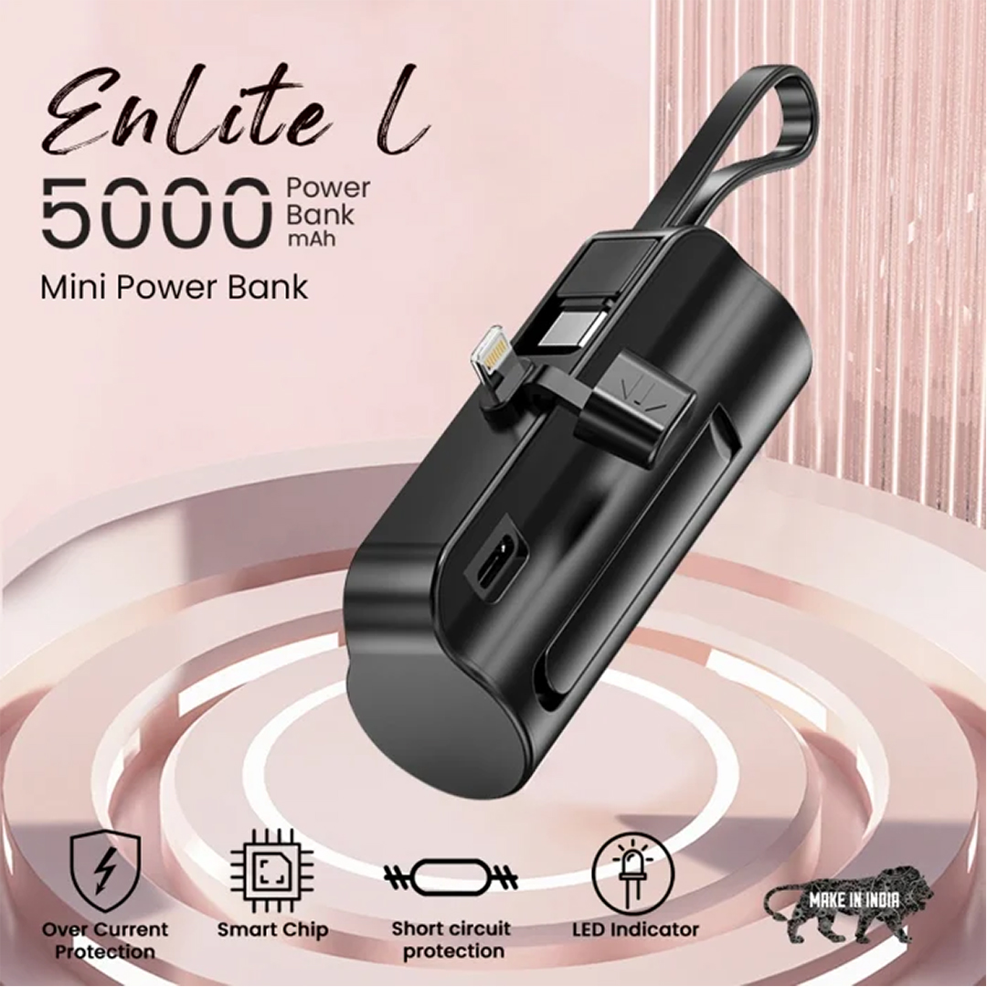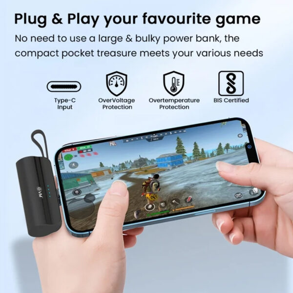 Specifications: Capacity : 5000mAh 3.7V (18.5Wh) Battery Type : Li-polymer Type-C Input : DC 5V/2.0A Type-C Cable O/P : DC 5V/2.4A Lightning O/P : DC 5V/2.4A