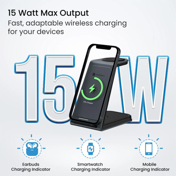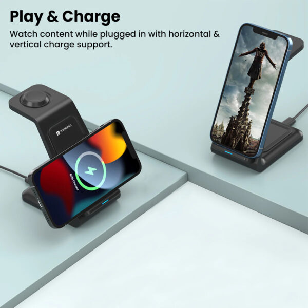 3-in-1 Wireless Charger: Portronics Freedom Trio is a 3-in-1 Wireless Charger, It is the best charging assistant for iPhone 15/14/13/12/11 series, iWatch and AirPods.